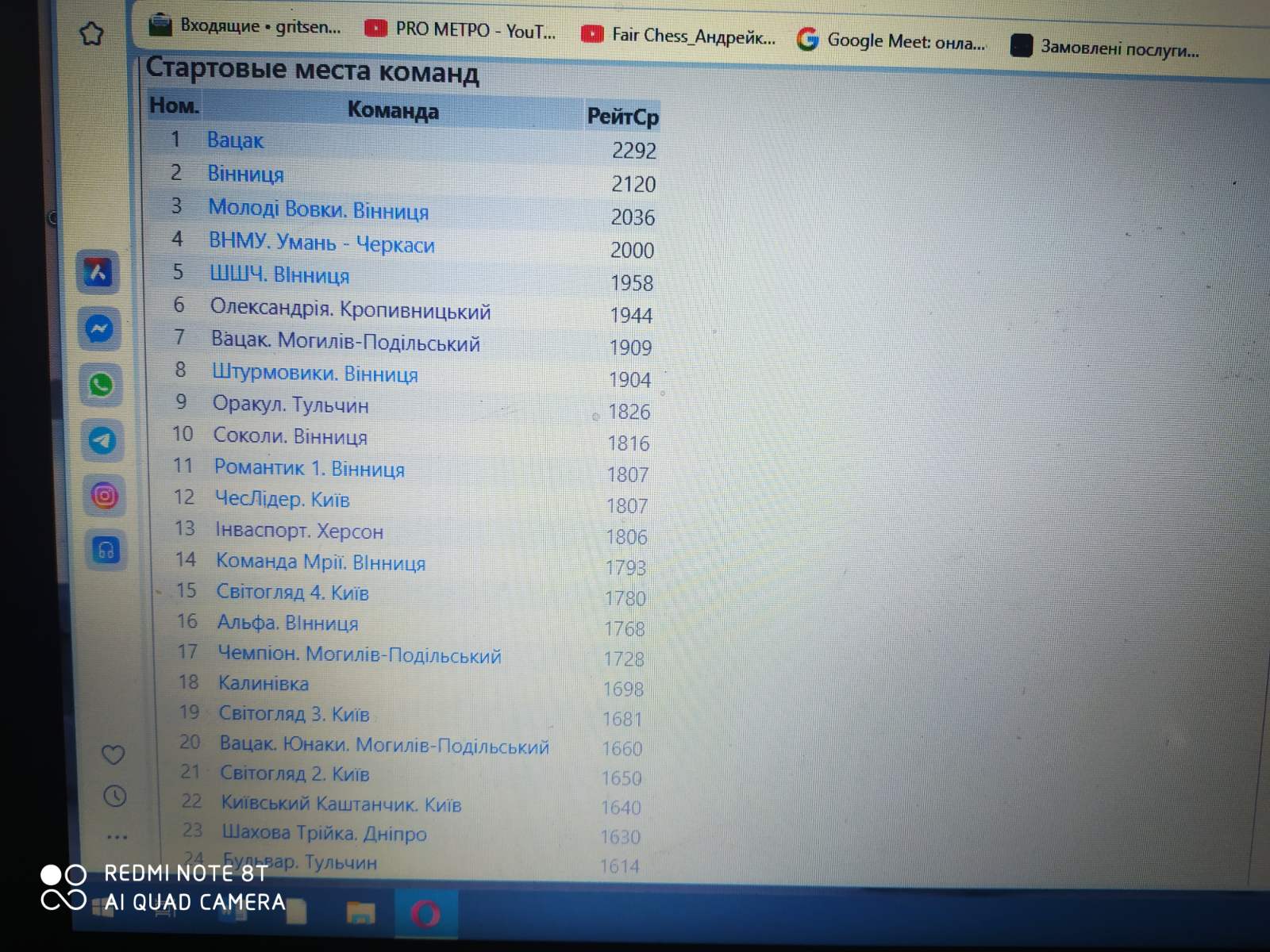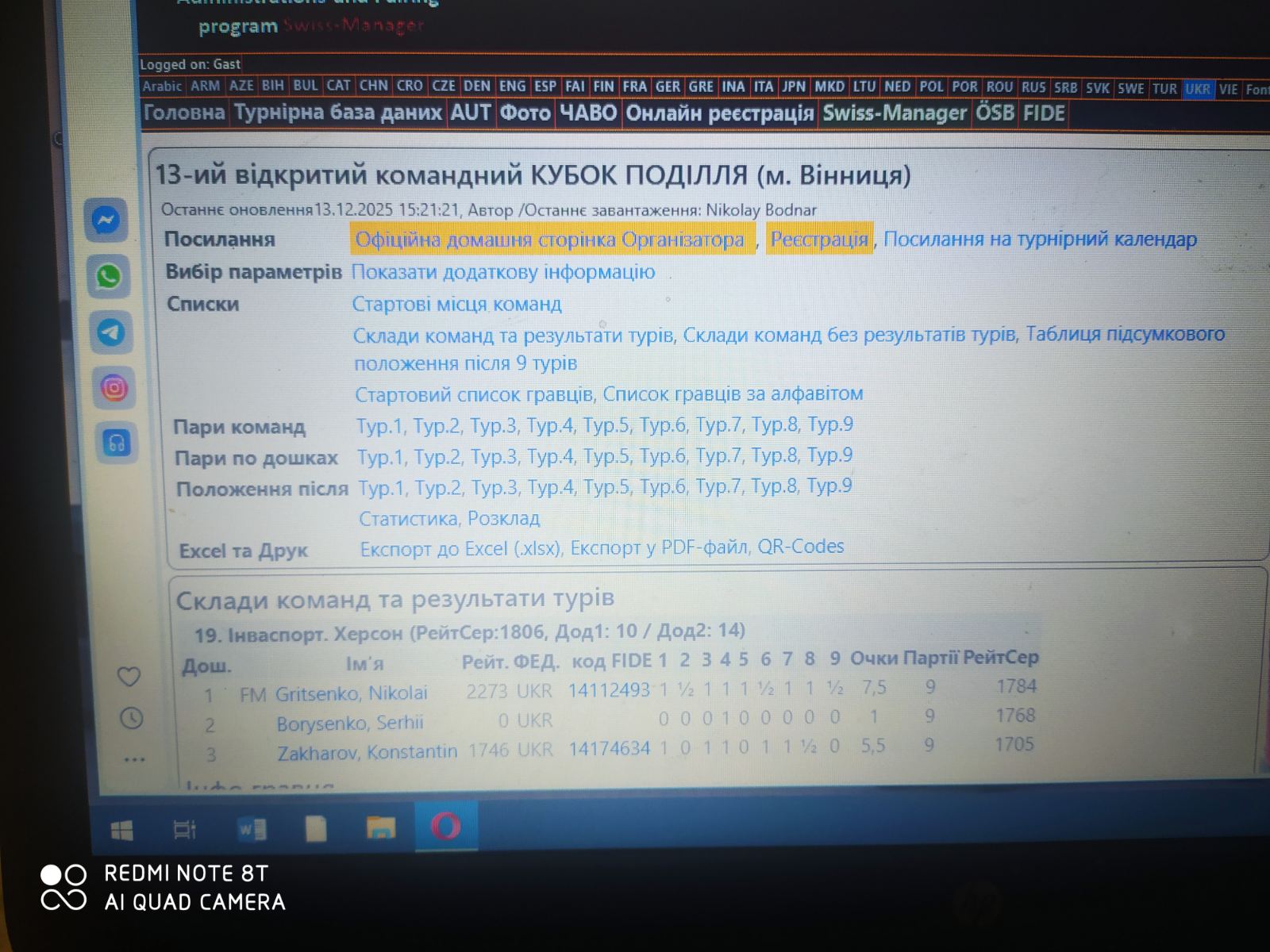 Відкритий командний Кубок Поділля з шахів Вінниця 13.12.25